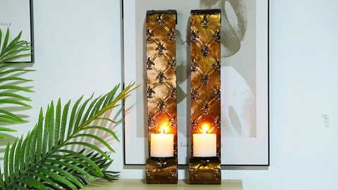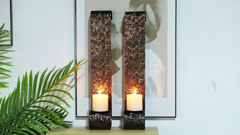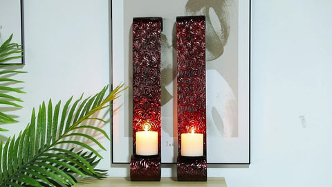 Sized at 22.5inch x 4inch x 4.1inch, these candle holders dominate any wall with their presence. Specifically designed to house 3.5inch(W) Pillar candles, they pledge safety while emphasizing aesthetics. Do note, candles are not included.