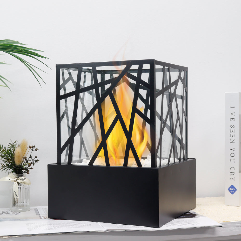 Imbued with an eco-conscious essence, this tabletop fireplace utilizes bio-ethanol fuel, assuring a clean and sustainable flame experience. Witness the enchanting dance of flames without the unwelcome byproducts, reinforcing your commitment to ecological responsibility while basking in the inviting warmth.