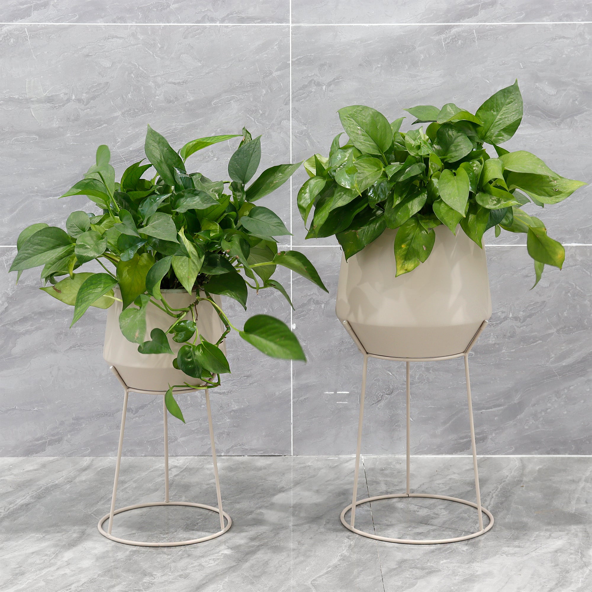 JHY DESIGN Modern Iron Tripod Planters - Set of 2, Matte Finish with Sturdy Metal Stands