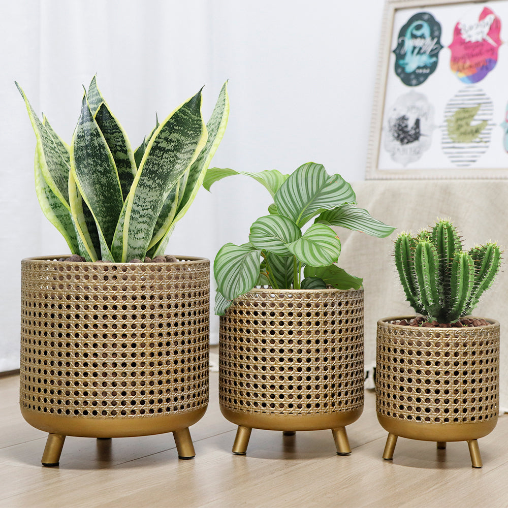 1. Gleaming Elegance: Each holder in this stunning set reflects the epitome of craftsmanship and beauty, with a shimmering gold finish that exudes luxury. As candle holders, they radiate light through captivating patterns, and as flower pots, they bring a golden lushness to greenery.