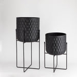 Set of Two 12" 17" H Tall Metal Flower Pot With Stand (Black)