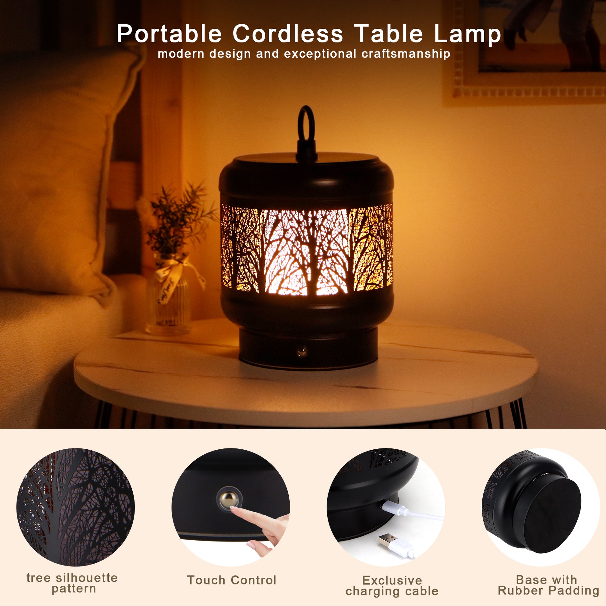 Priority Quality Portable Lamp: TRIROCKS rechargeable lamps for home are designed to improve life quality. Crafted from high-quality metal, this elegant lantern features intricate tree silhouette cutouts that project captivating shadows, effortlessly enhancing any indoor or outdoor setting. Its robust construction not only adds a touch of durability but also complements the aesthetic appeal, making it a perfect blend of functionality and style.