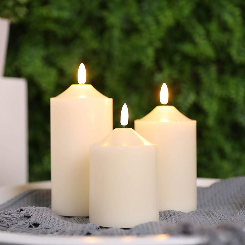 The 3D aesthetic of these LED pillar candles brings a unique depth, enriching spaces with a vibrant play of light and shadow.