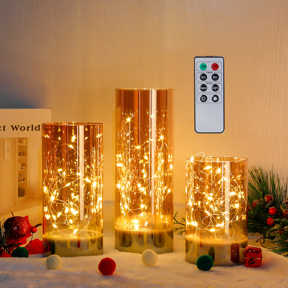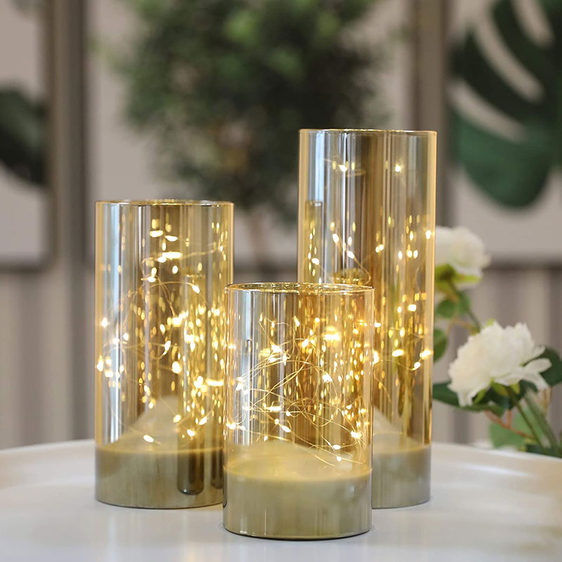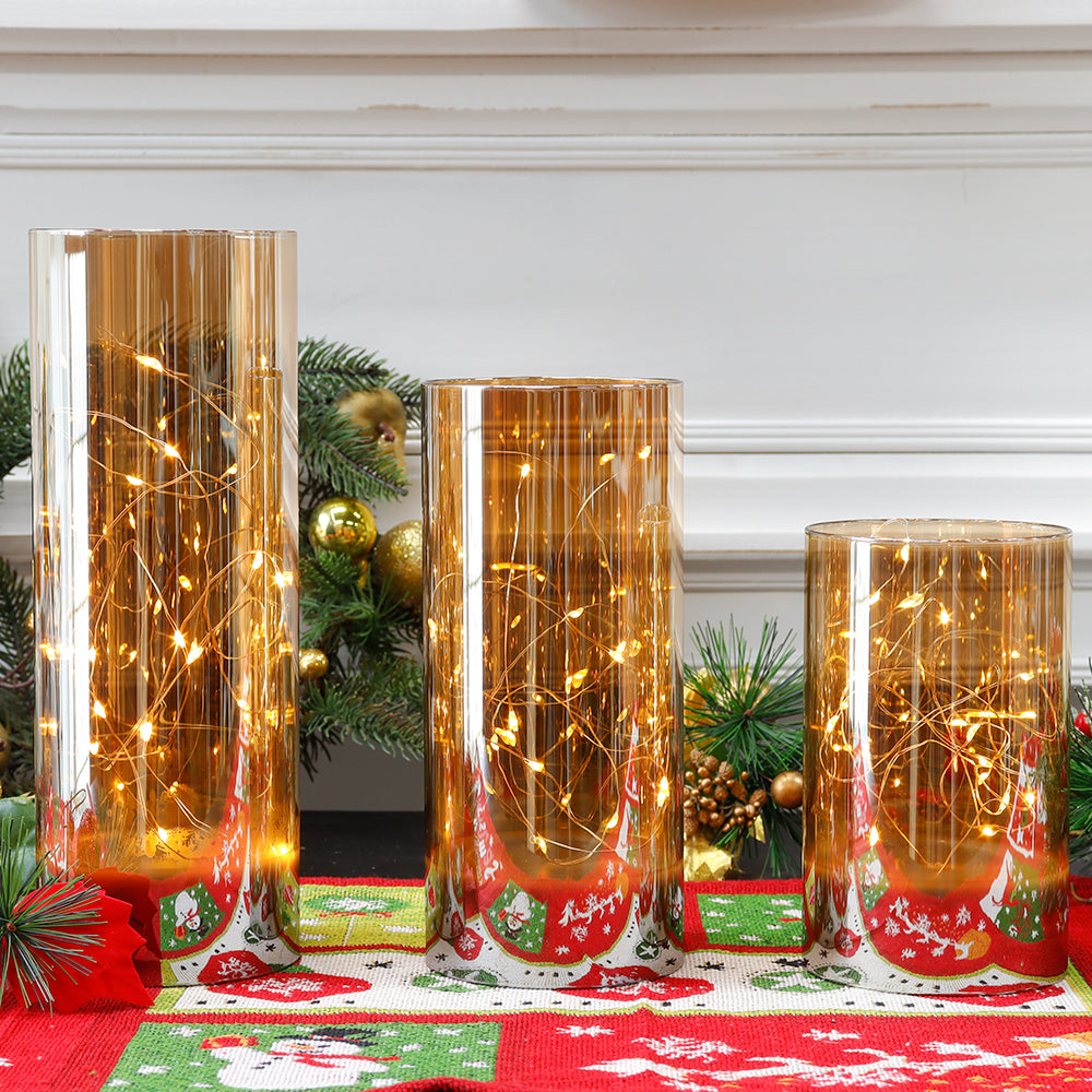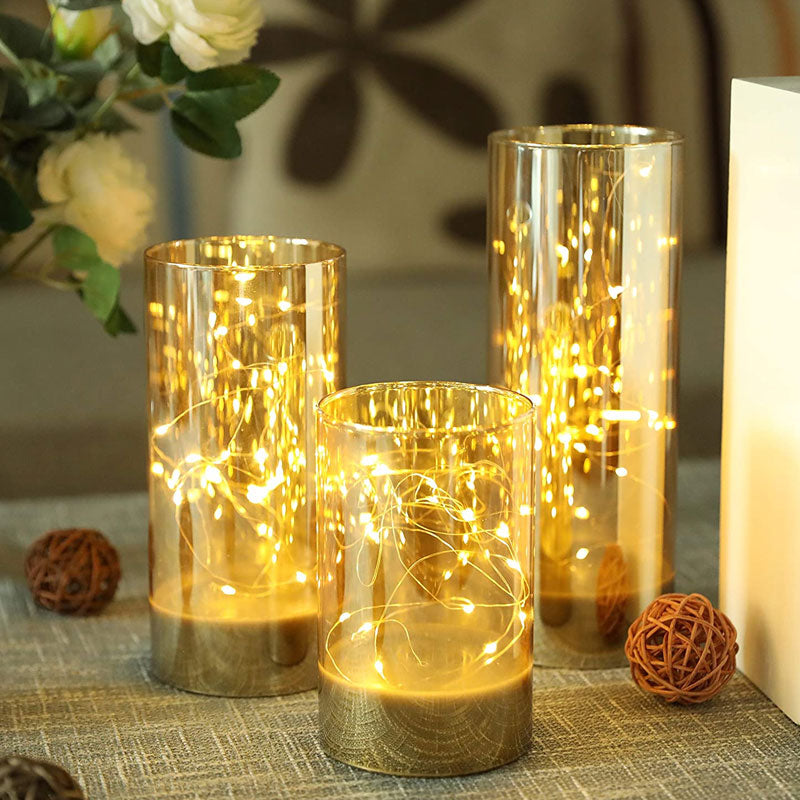6/8/10inch High Battery Glass Decorative Lights(Set of 3)