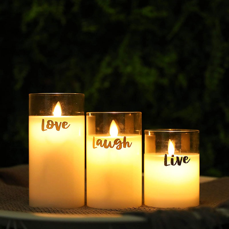 JHY DESIGN’s Heartfelt Luminaries: The “Live, Love, Laugh” Glass Wax LED Candle Trio