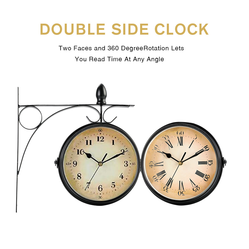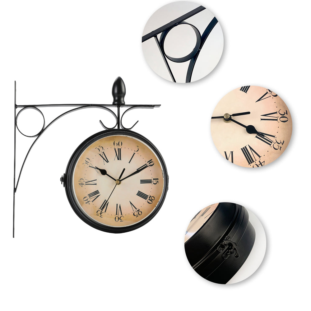 Have you ever desired a clock that offers multiple viewpoints? This double-sided clock answers that call. Its bi-facial design not only doubles the perspective but also amplifies the charm it brings to any space. The clock’s meticulous details, combined with its sleek finish, make it a versatile gem in any setting.