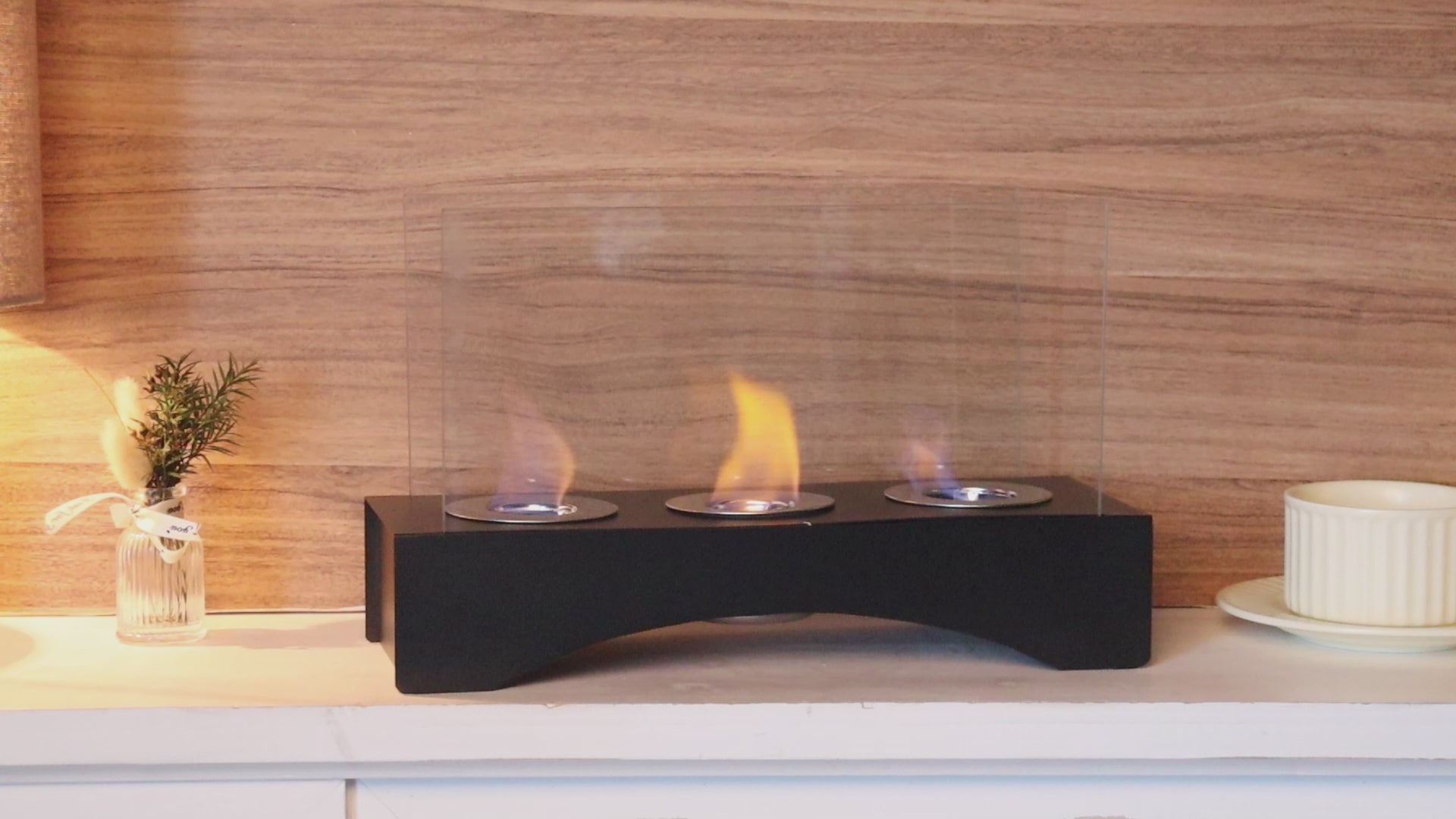 Perfectly Proportioned: Measuring a sleek 13.5"×5"×8.5", this portable fireplace effortlessly finds its place in various settings, whether it graces a cozy corner in your living room or takes center stage as a captivating dining area centerpiece.