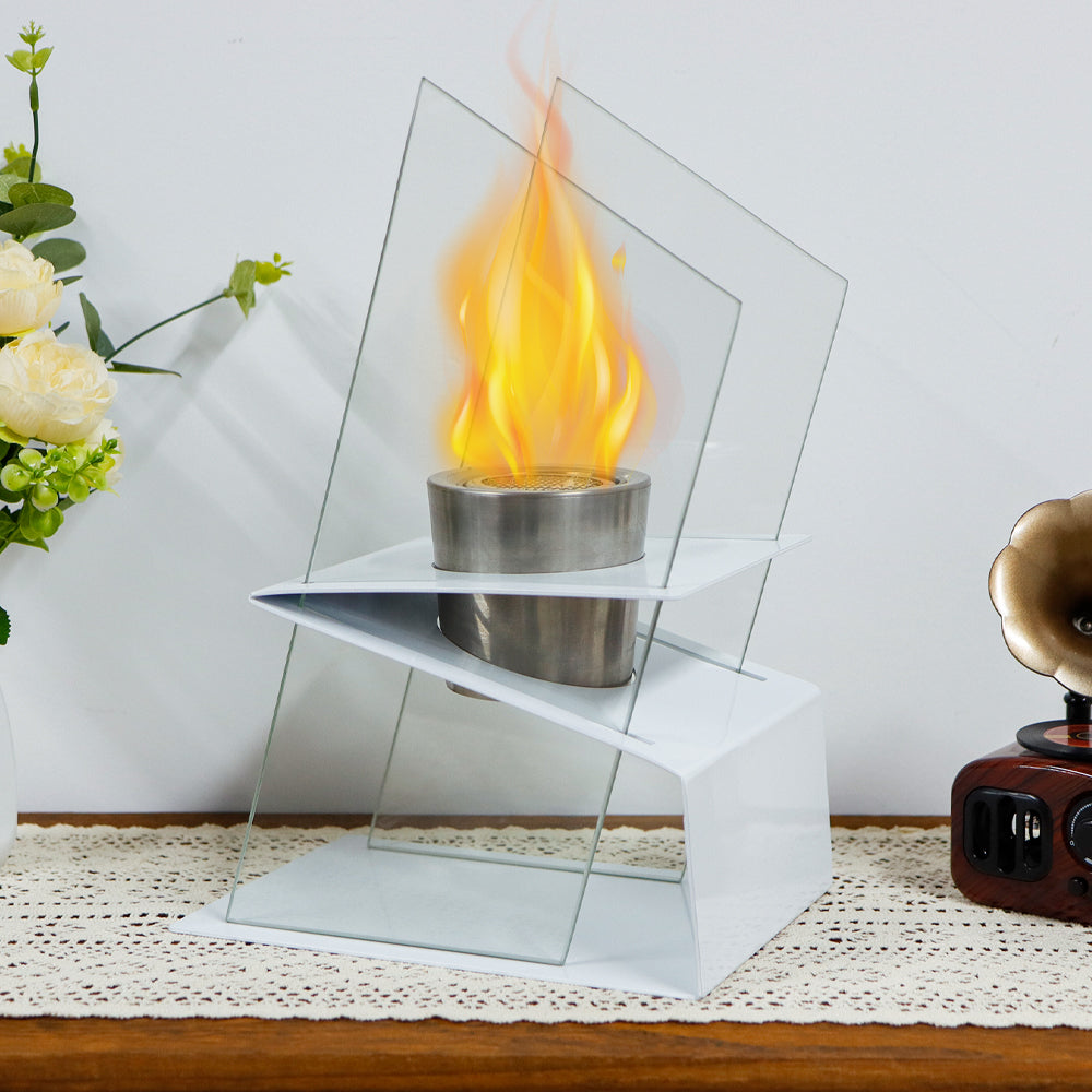 White Tabletop Fireplace 13.8" High Iron Folding Base Decorative Ethanol Fire Pit