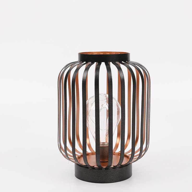 The lamp boasts a meticulous metal cage design, providing an industrial yet refined aesthetic, making it a standout piece in any setting.Efficient Battery Operation
