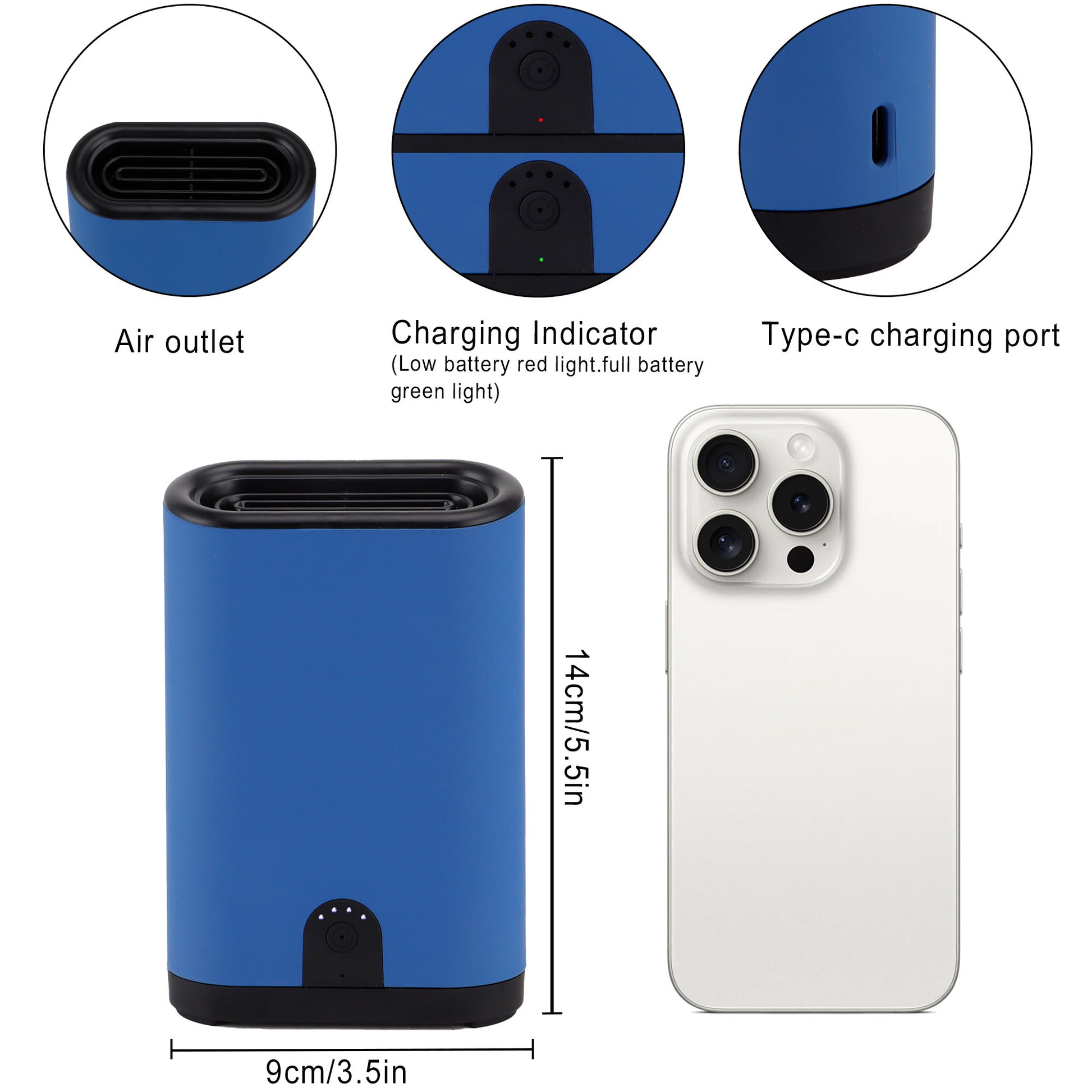 Type-C Charging & 5000mAh Battery: This air purifier is equipped with a Type-C charging port and a powerful 5000mAh battery,complements its 9x7x3" compact size for easy mobility and fits effortlessly in any space, ensuring you can enjoy fresh air anywhere without frequent recharges.