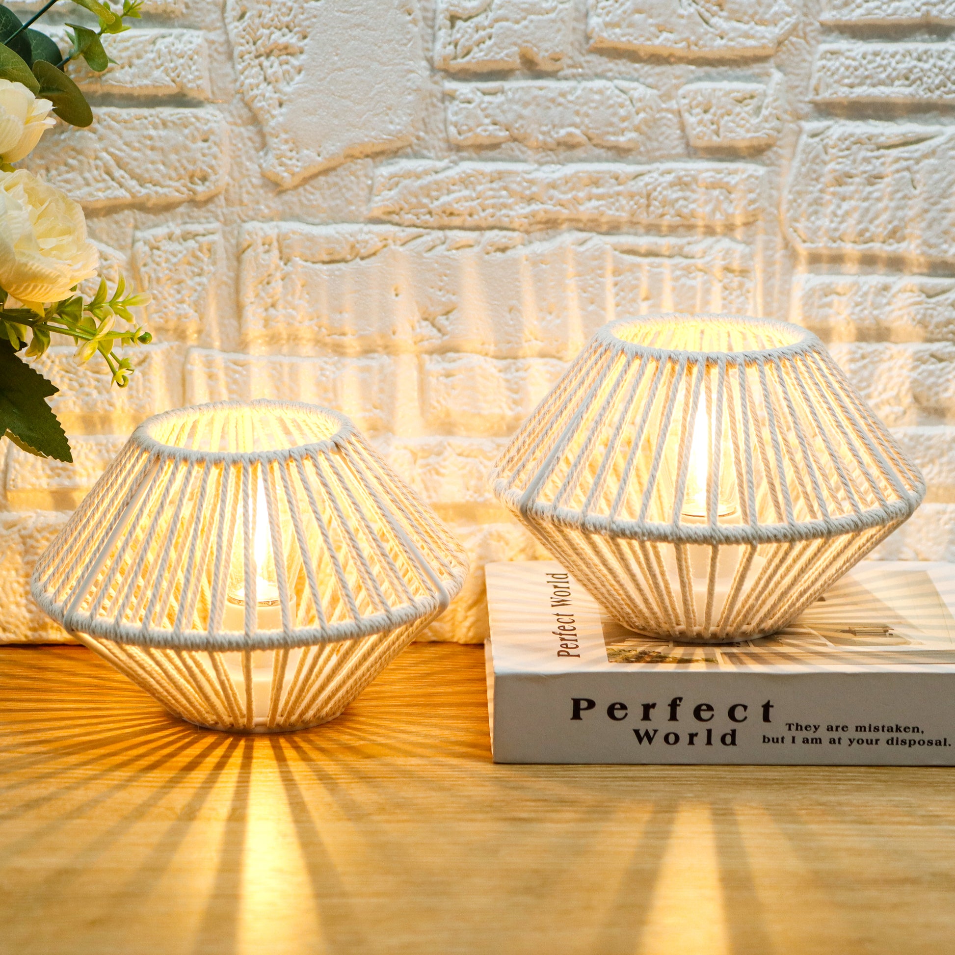 Stylish & Functional Boho Lighting Set:This set of two 7x7x5 inch cordless table lamps combines natural elegance with practical design. Handwoven from high-quality cotton rope, the lamps offer a warm, textured look that complements boho, rustic, and modern decor styles. Whether placed in your bedroom, living room, or on a desk, they bring cozy, ambient charm to any space—without the clutter of cords.
